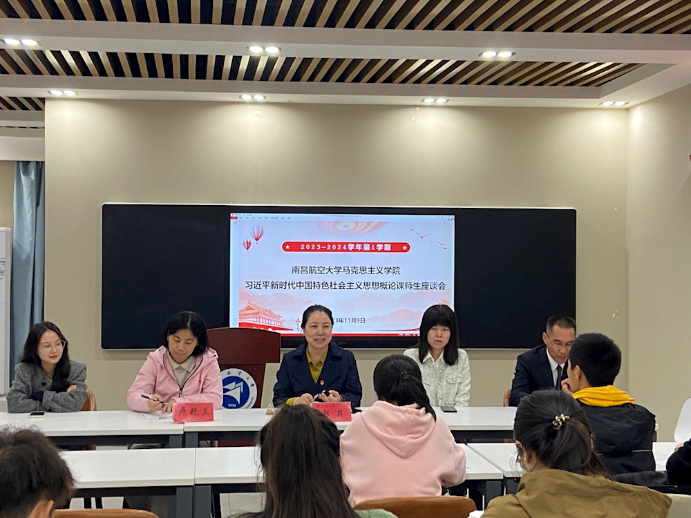 为不断提升课程的教学质量,全力打造学生“真心喜欢、终身受用”的思政“金课”,2023年11月9日下午,习近平新时代中国特色社会主义思想概论课(以下简称“概论”课)教研室开展了本学期师生座谈会活动。马克思主义学院院长郭莉、“概论”课教研室全体教师及授课班级学生代表参会。座谈会由教研室主任卢艳兰主持。