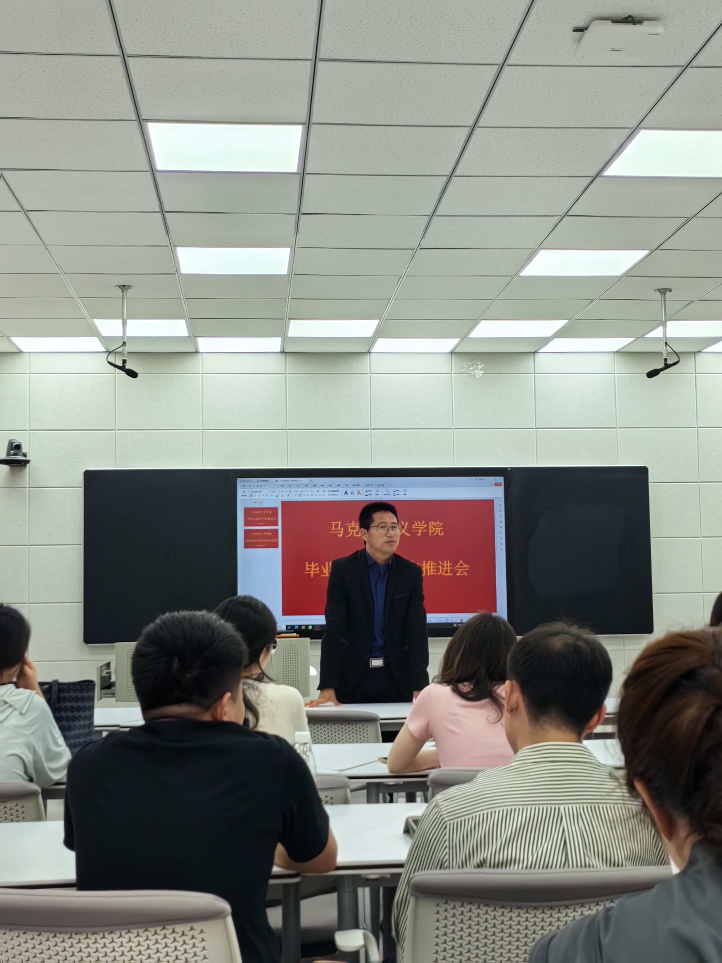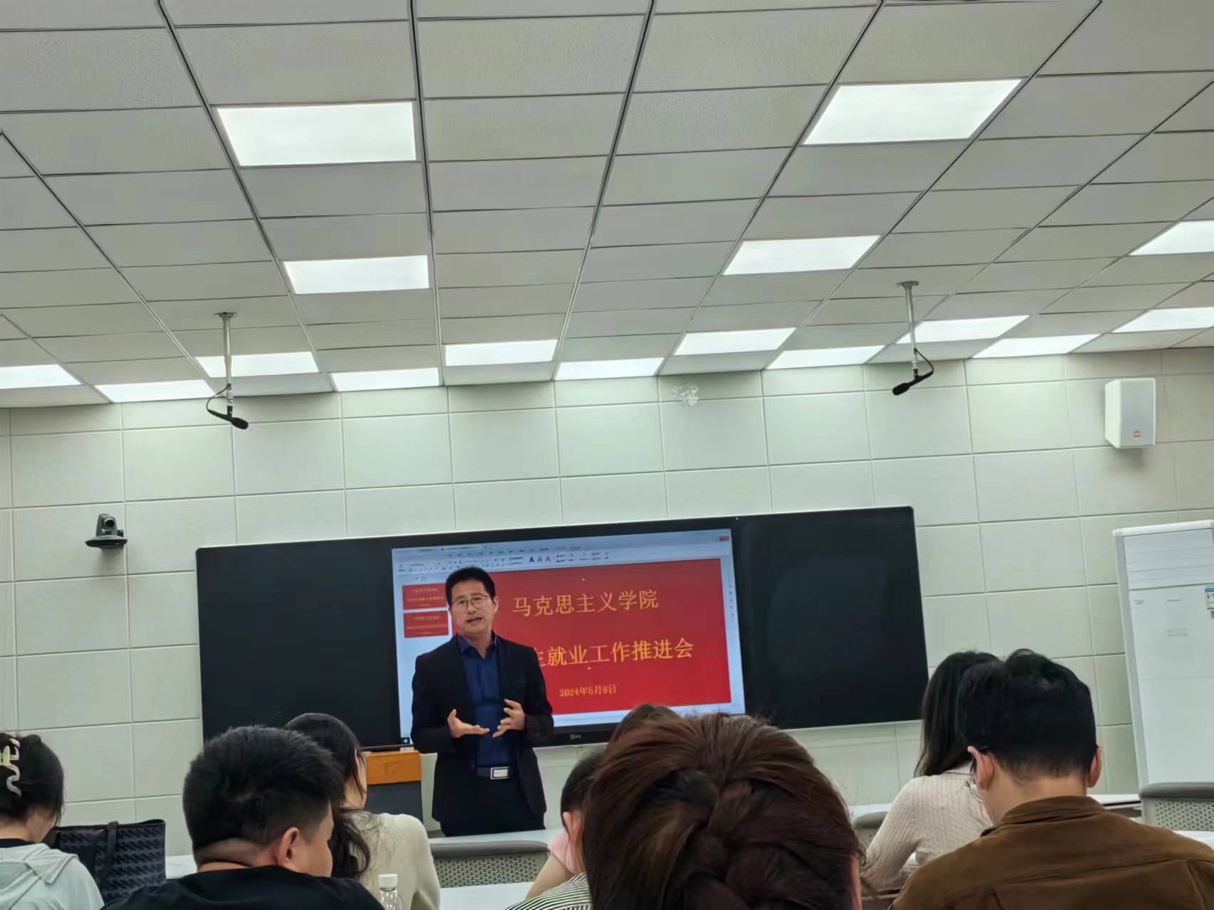 最后他强调毕业生就业工作是学院高质量发展的重要一环,毕业生是学院的骄傲和未来,学院会始终关注同学们的就业问题,并提供最好的帮助和支持。同时对各位毕业生提出来相关要求与希望,一要树立远大理想,提高自身素质,练就扎实的过硬的综合本领,做自信的“思政人”“马院人”;二要厘清毕业与就业的逻辑关系,要先确保毕业,顺利就好业。三要克服求职压力,建设积极心理。建议同学们多加锻炼,增强自身体质,迎接毕业就业的挑战。