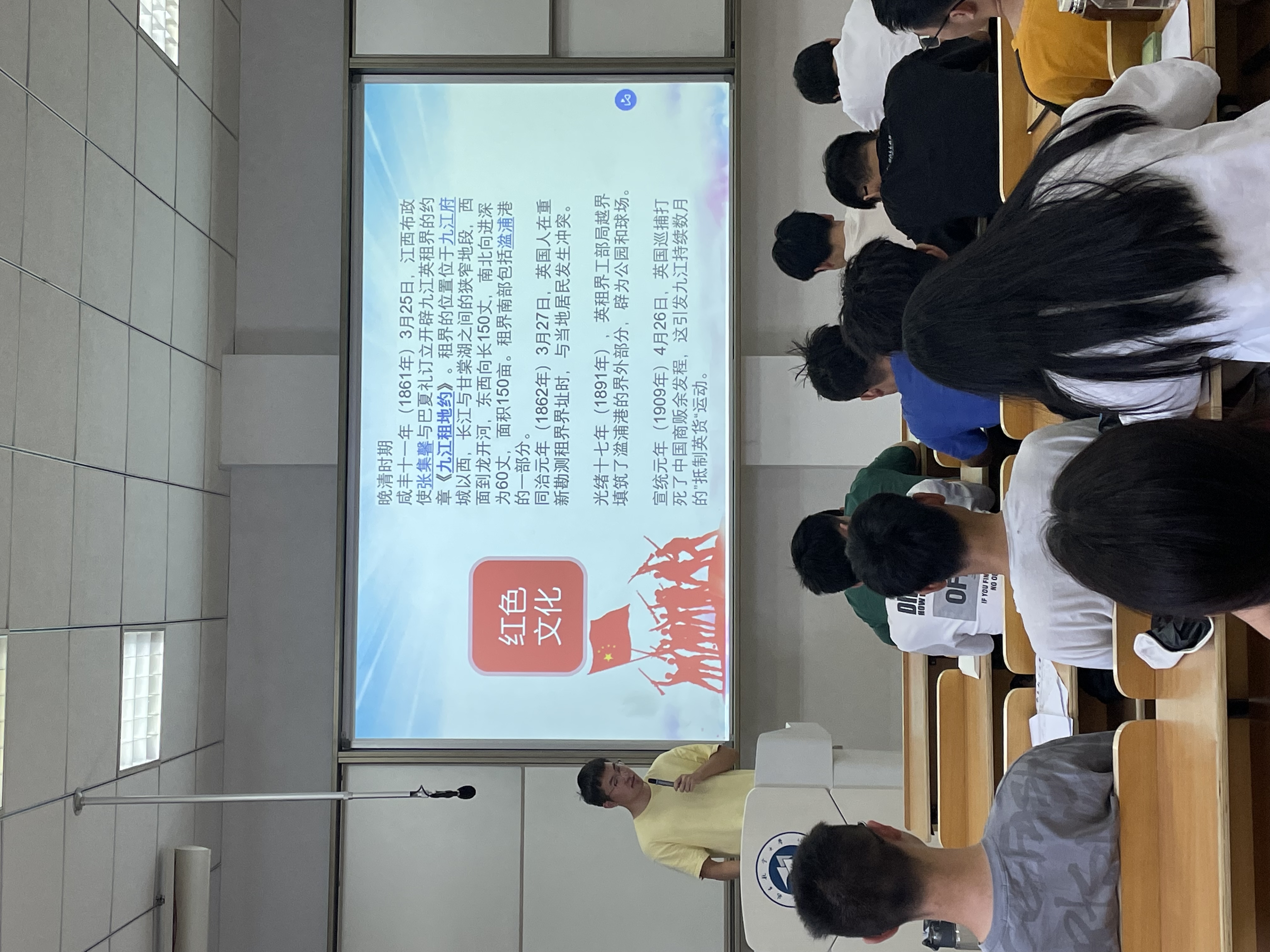 为深入学习贯彻党的二十大精神,全面落实习近平对学校思政课建设作出重要指示,持续深化高校思政课“问题式专题化团队”教学改革,不断创新思政课教学模式,2024年5月15日,南昌航空大学马克思主义学院中国近现代史纲要(以下简称“纲要”)主讲教师杨文与23级材料科学与工程学院学生詹子昊、何平、任纪旭开展“师生同台”活动,为百余名本科生带来了一堂精彩的红色文化课程。