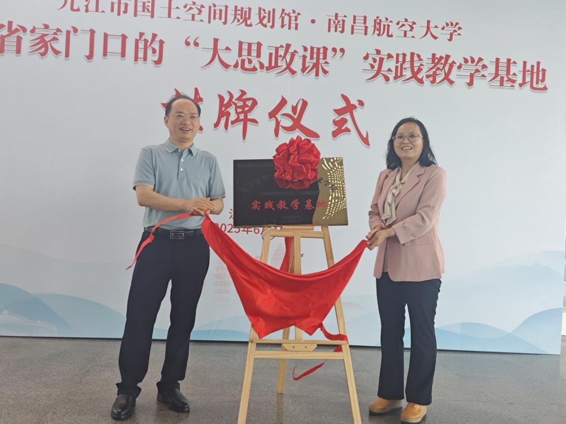 6月15日上午,南昌航空大学马克思主义学院与九江市国土空间规划馆举行江西省家门口的“大思政课”实践教学基地签约与揭牌仪式。九江市自然资源局党委委员、副局长谢远宏,九江市国土空间规划馆馆长袁珍珍、副馆长鞠艳君及干部职工代表,南昌航空大学马克思主义学院副院长常青、纲要课教研室黄文婷博士及研究生代表出席仪式,仪式由常青主持。